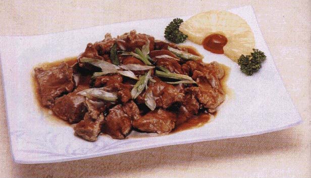 add sesame oil. Pour in beef slices, boil for 2 minutes.