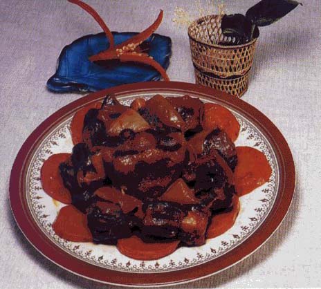 ketchup with oil, add in oxtail and stir-fry. Put in