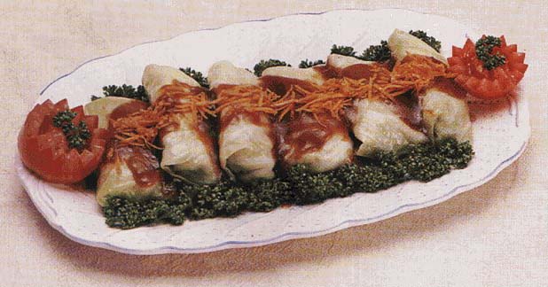 and arrange on plate. Steam for 8 minutes. Heat sauce
