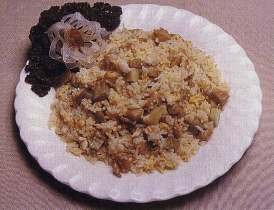 and rice, keep stirring. Then add Chinese broccoli, egg
