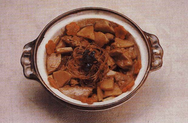 Stir-fry chicken meat for 3 minutes. Put into an earthen